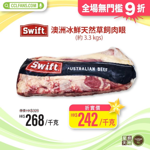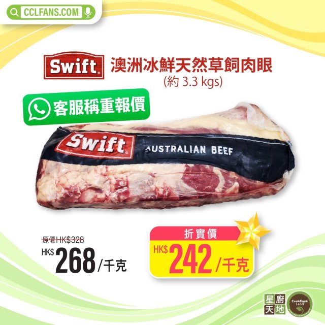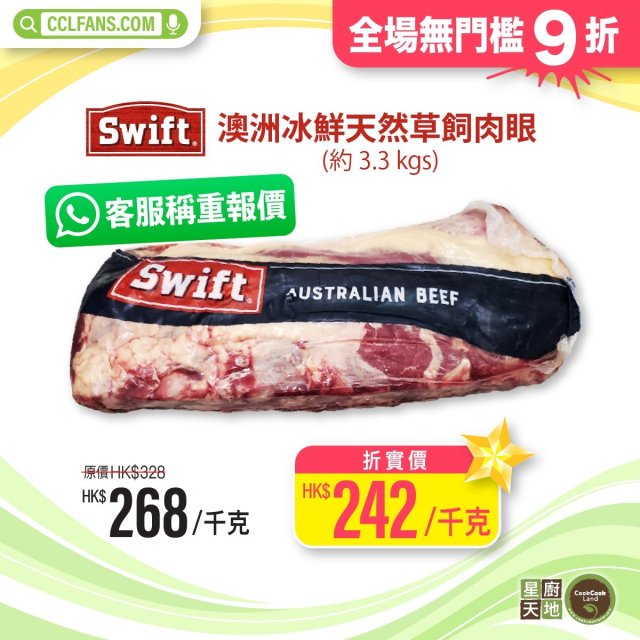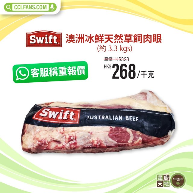 【限時】澳洲冰鮮天然草飼肉眼(原條約3.3kgs) 以每KG計