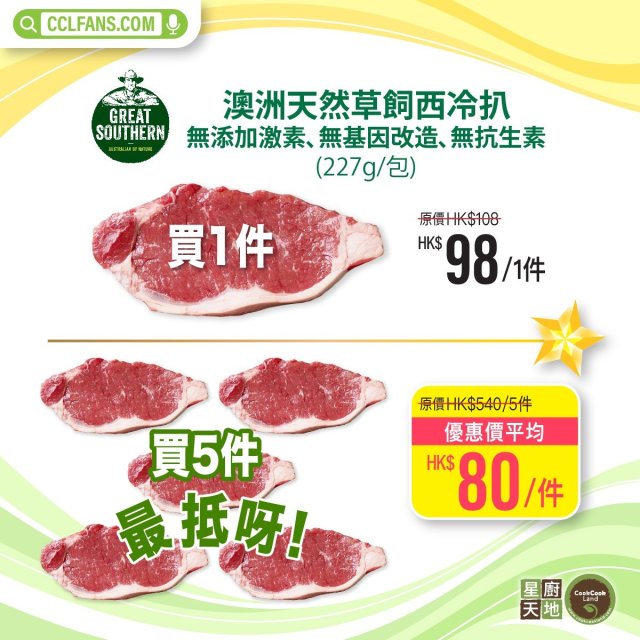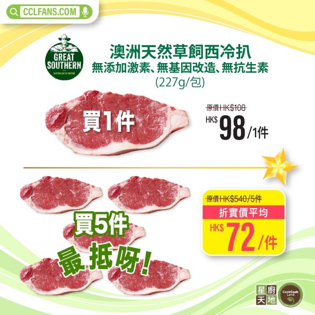 【限時】澳洲 GREAT SOUTHERN 純天然草飼西冷扒 227g