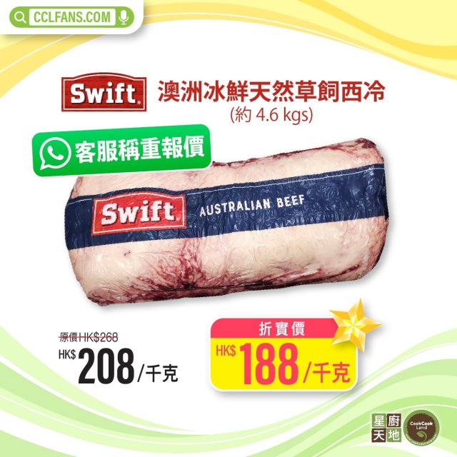 【限時】澳洲冰鮮天然草飼西冷 (原條約4.6KGS) 以每KG計