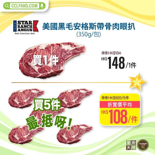 【限時】美國 STAR RANCH純黑毛安格斯帶骨肉眼扒 350g