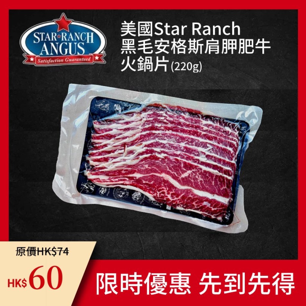 【限時】美國 STAR RANCH純黑毛安格斯BLACK ANGUS 肩胛肥牛火鍋片 220g