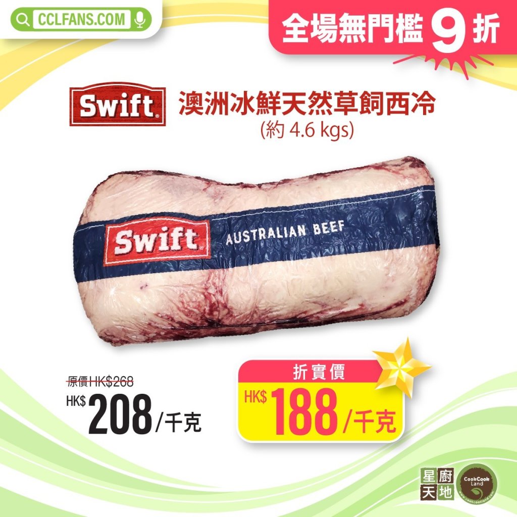 【限時】澳洲冰鮮天然草飼西冷 (原條約4.6KGS) 以每KG計