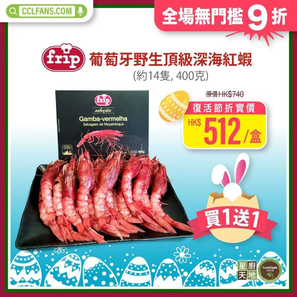 【買一送一】葡萄牙FRIP野生頂級深海紅蝦(一盒約14隻)400g